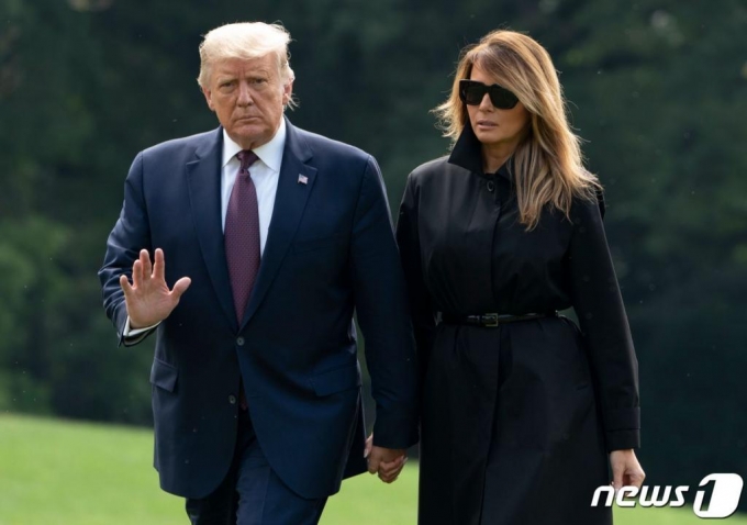 | (AFP=뉴스1) = 도널드 트럼프 미국 대통령 부부가 2일 신종 코로나바이러스(코로나19) 확진 판정을 받았다. 트럼프 대통령은 이날 트위터에 "멜라니아와 내가 코로나19 양성 판정을 받았다"며 "우리는 즉시 자가격리와 회복 절차를 시작한다. 우리는 함께 이겨낼 것이다"라고 적었다. 사진은 지난달 11일 백악관으로 돌아가는 트럼프 대통령 부부 모습. ⓒ AFP=뉴스1 |