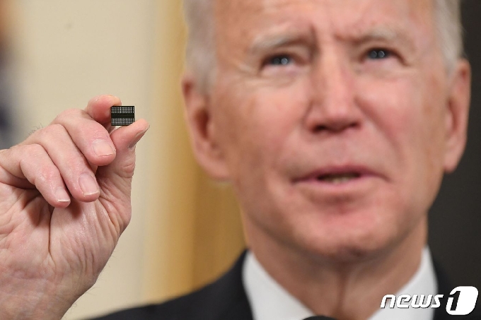 | 조 바이든 미국 대통령이 24일(현지시간) 워싱턴 백악관에서 반도체· 희토류 ·배터리 등 핵심 품목의 공급망을 확보하는 내용의 행정명령에 서명을 하기 전에 반도체 칩을 들고 연설을 하고 있다. © AFP=뉴스1 © News1 우동명 기자 |