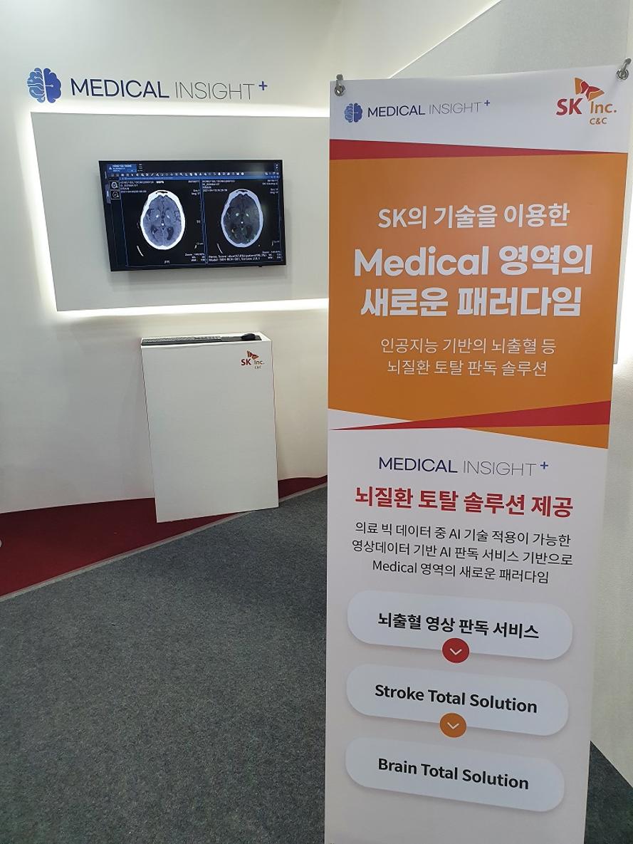 SK C&C는 AI 알고리즘 기반 뇌출혈 진단 솔루션을 선보였다. SK C&C에 따르면 알고리즘 정확도가 97.7%에 달하며, 경험이 많지 않은 의사의 판독 정확도를 영상의학 전문의 수준으로 높여준다.
